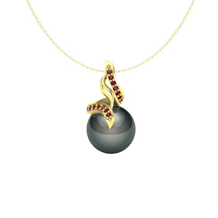 Siyah inci ve garnet 925 ayar altın kaplama gümüş kolye (40 cm altın rolo zincir)