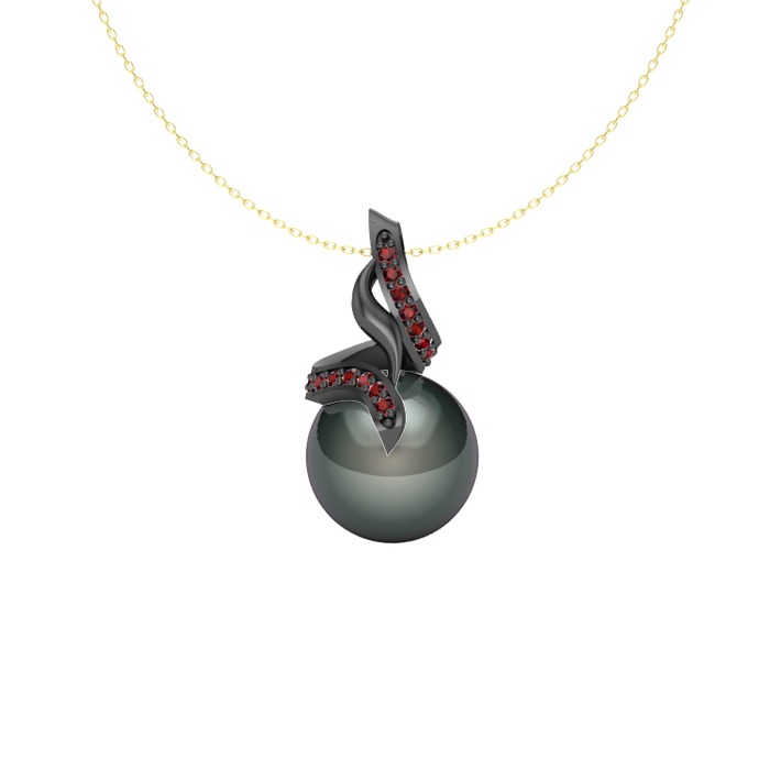 Siyah inci ve garnet 925 ayar siyah rodyum kaplama gümüş kolye (40 cm altın rolo zincir)