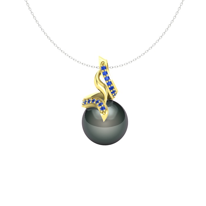 Siyah inci ve lab safir 14 ayar altın kolye (40 cm beyaz altın rolo zincir)