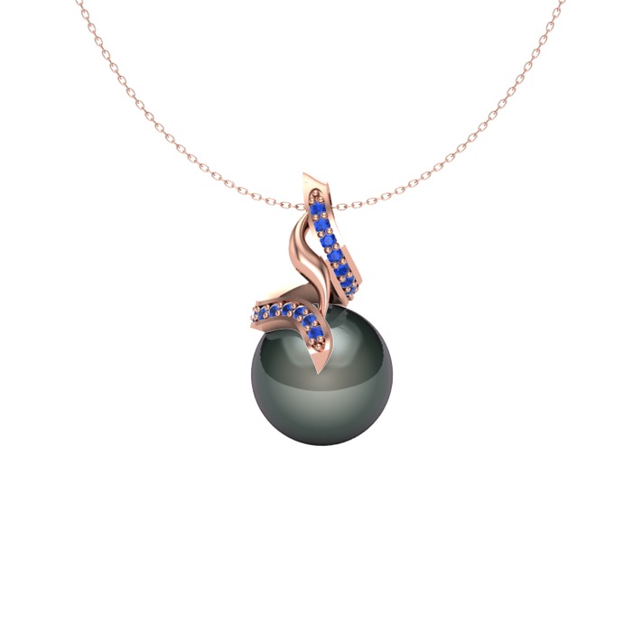 Siyah inci ve lab safir 925 ayar rose altın kaplama gümüş kolye (40 cm rose altın rolo zincir)