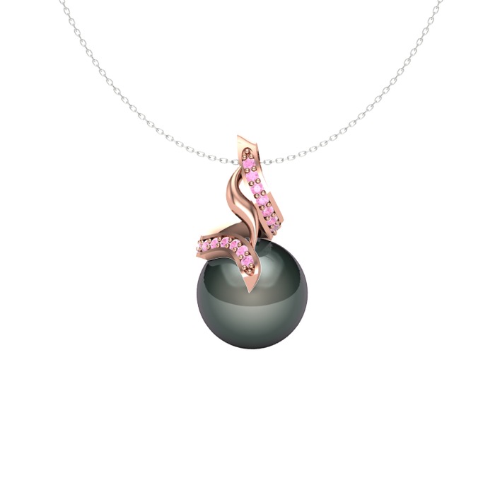 Siyah inci ve pembe kuvars 925 ayar rose altın kaplama gümüş kolye (40 cm gümüş rolo zincir)