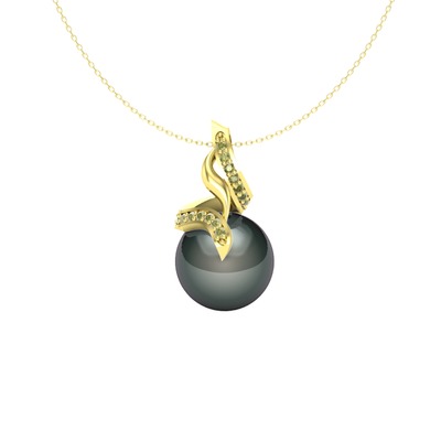 Siyah inci ve peridot 14 ayar altın kolye (40 cm gümüş rolo zincir)