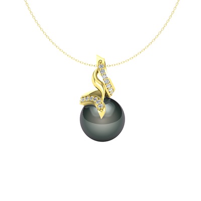 Siyah inci ve pırlanta 14 ayar altın kolye (0.2288 karat, 40 cm gümüş rolo zincir)