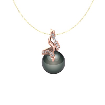 Siyah inci ve pırlanta 18 ayar rose altın kolye (0.2288 karat, 40 cm altın rolo zincir)