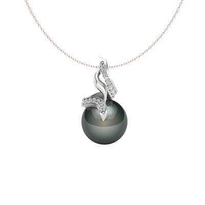 Siyah inci ve pırlanta 925 ayar gümüş kolye (0.2288 karat, 40 cm rose altın rolo zincir)
