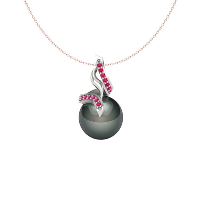 Siyah inci ve rodolit garnet 8 ayar beyaz altın kolye (40 cm rose altın rolo zincir)