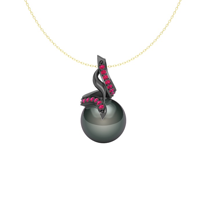 Siyah inci ve rodolit garnet 925 ayar siyah rodyum kaplama gümüş kolye (40 cm altın rolo zincir)
