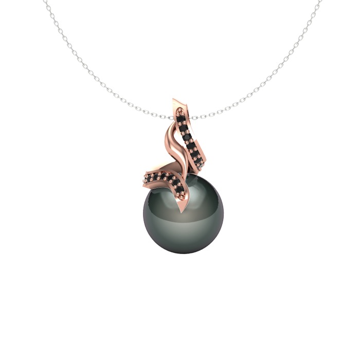 Siyah inci ve siyah zirkon 18 ayar rose altın kolye (40 cm beyaz altın rolo zincir)