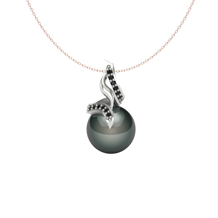 Siyah inci ve siyah zirkon 8 ayar beyaz altın kolye (40 cm rose altın rolo zincir)