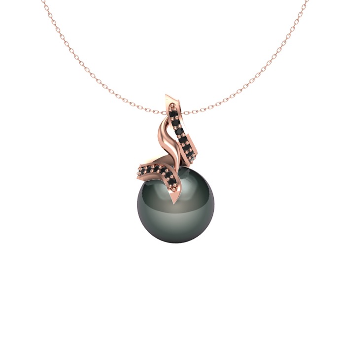 Siyah inci ve siyah zirkon 925 ayar rose altın kaplama gümüş kolye (40 cm rose altın rolo zincir)