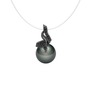 Siyah inci ve siyah zirkon 925 ayar siyah rodyum kaplama gümüş kolye (40 cm beyaz altın rolo zincir)