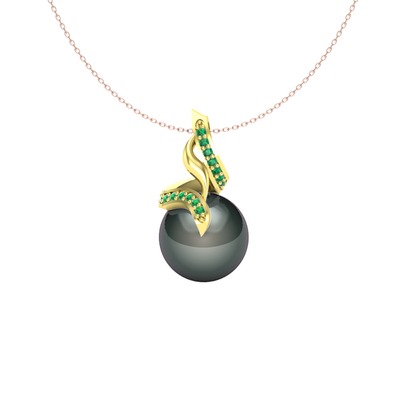 Siyah inci ve yeşil kuvars 8 ayar altın kolye (40 cm rose altın rolo zincir)