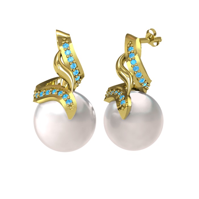 Inci ve akuamarin 925 ayar altın kaplama gümüş küpe