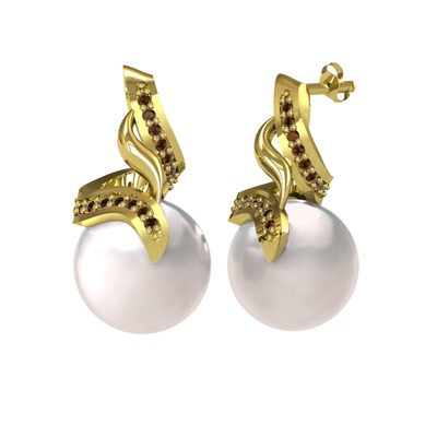 Inci ve dumanlı kuvars 8 ayar altın küpe