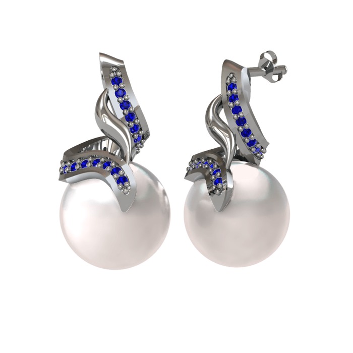 Inci ve lab safir 8 ayar beyaz altın küpe