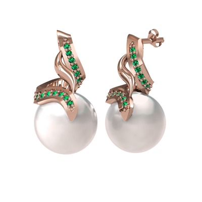 Inci ve yeşil kuvars 18 ayar rose altın küpe