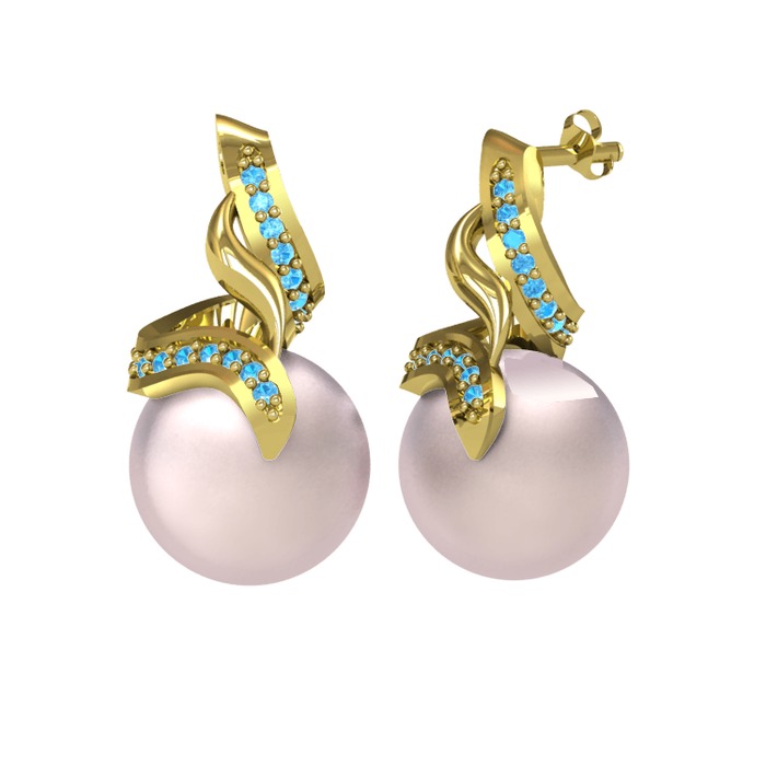 Pembe inci ve akuamarin 14 ayar altın küpe