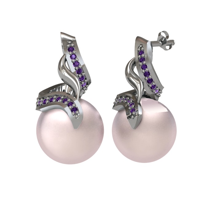 Pembe inci ve ametist 14 ayar beyaz altın küpe