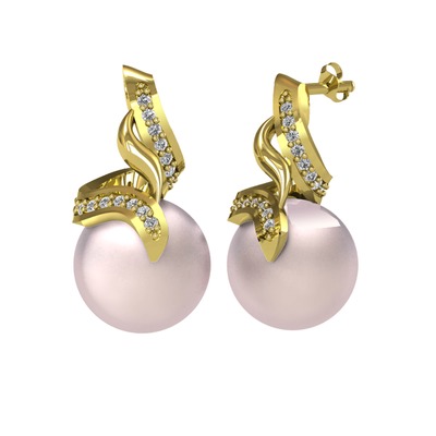 Pembe inci ve beyaz zirkon 14 ayar altın küpe