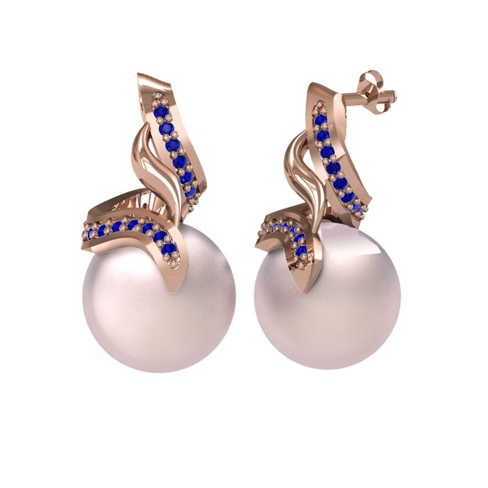 Pembe inci ve lab safir 925 ayar rose altın kaplama gümüş küpe
