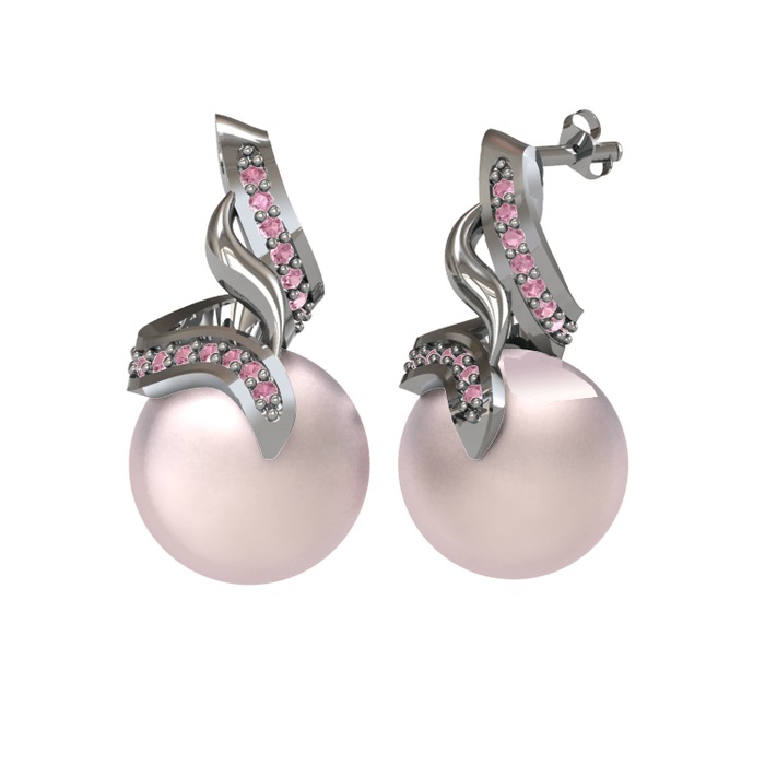 Pembe inci ve pembe kuvars 8 ayar beyaz altın küpe