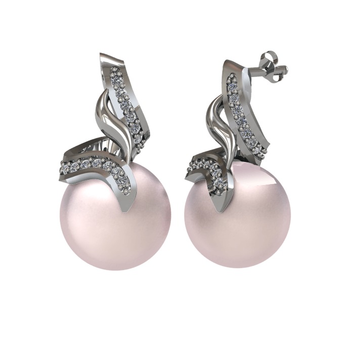 Pembe inci ve pırlanta 925 ayar gümüş küpe (0.4576 karat)