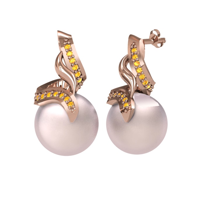 Pembe inci ve sitrin 8 ayar rose altın küpe
