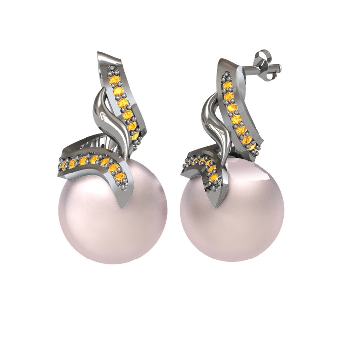Pembe inci ve sitrin 925 ayar gümüş küpe