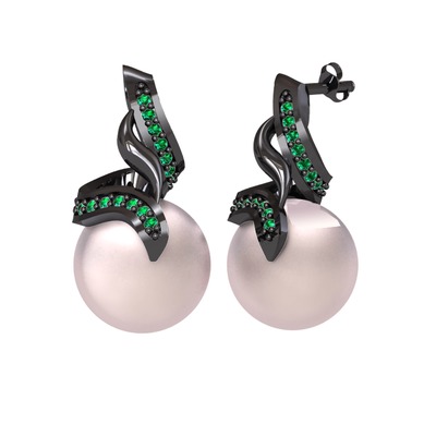 Pembe inci ve yeşil kuvars 925 ayar siyah rodyum kaplama gümüş küpe