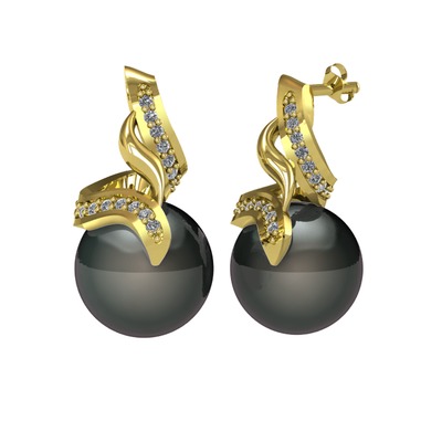 Siyah inci ve pırlanta 925 ayar altın kaplama gümüş küpe (0.4576 karat)