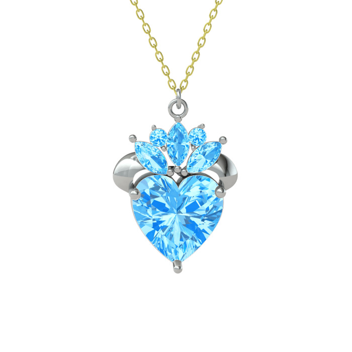 Akuamarin 8 ayar beyaz altın kolye (40 cm gümüş rolo zincir)