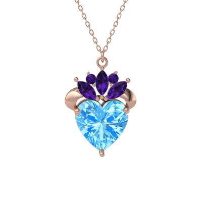 Akuamarin ve ametist 14 ayar rose altın kolye (40 cm rose altın rolo zincir)