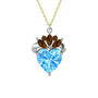 Akuamarin ve dumanlı kuvars 14 ayar beyaz altın kolye (40 cm altın rolo zincir)