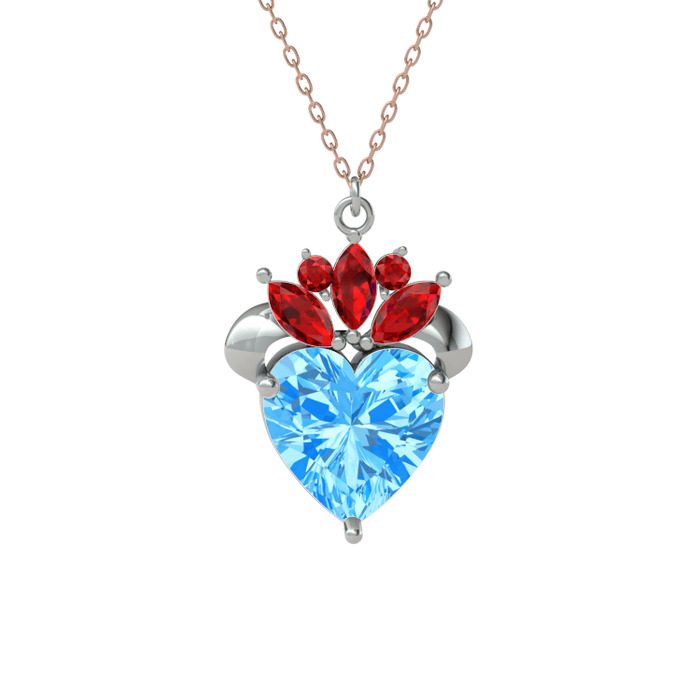Akuamarin ve garnet 18 ayar beyaz altın kolye (40 cm rose altın rolo zincir)