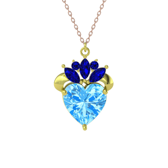 Akuamarin ve lab safir 925 ayar altın kaplama gümüş kolye (40 cm rose altın rolo zincir)