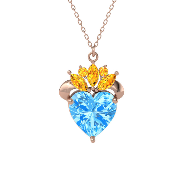 Akuamarin ve sitrin 14 ayar rose altın kolye (40 cm rose altın rolo zincir)