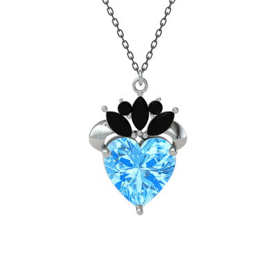 Akuamarin ve siyah zirkon 925 ayar gümüş kolye (40 cm gümüş rolo zincir)