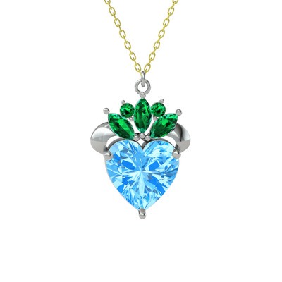 Akuamarin ve yeşil kuvars 8 ayar beyaz altın kolye (40 cm gümüş rolo zincir)