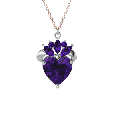Ametist 8 ayar beyaz altın kolye (40 cm gümüş rolo zincir)