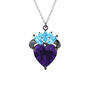 Ametist ve akuamarin 925 ayar siyah rodyum kaplama gümüş kolye (40 cm beyaz altın rolo zincir)