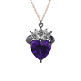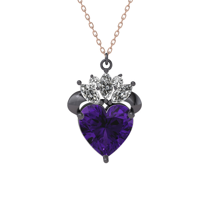 Ametist ve beyaz zirkon 925 ayar siyah rodyum kaplama gümüş kolye (40 cm rose altın rolo zincir)