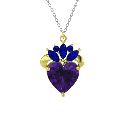 Ametist ve lab safir 14 ayar altın kolye (40 cm beyaz altın rolo zincir)