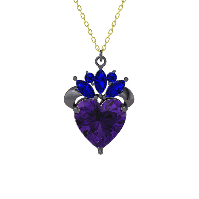 Ametist ve lab safir 925 ayar siyah rodyum kaplama gümüş kolye (40 cm gümüş rolo zincir)