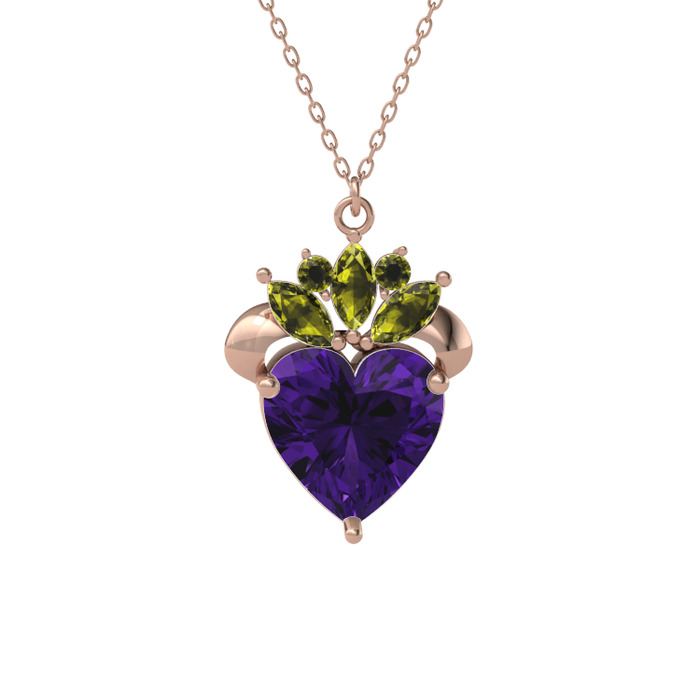 Ametist ve peridot 8 ayar rose altın kolye (40 cm gümüş rolo zincir)