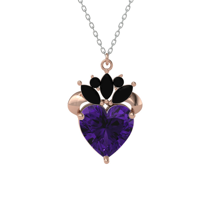 Ametist ve siyah zirkon 14 ayar rose altın kolye (40 cm beyaz altın rolo zincir)