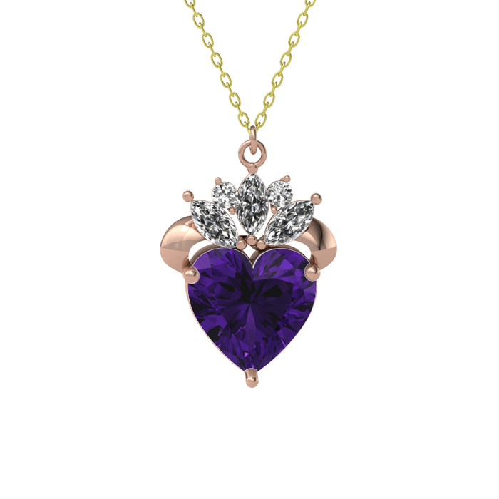 Ametist ve swarovski 14 ayar rose altın kolye (40 cm altın rolo zincir)
