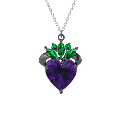 Ametist ve yeşil kuvars 925 ayar siyah rodyum kaplama gümüş kolye (40 cm gümüş rolo zincir)