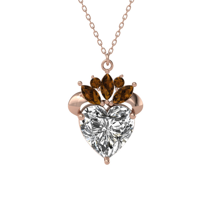 Beyaz zirkon ve dumanlı kuvars 18 ayar rose altın kolye (40 cm rose altın rolo zincir)