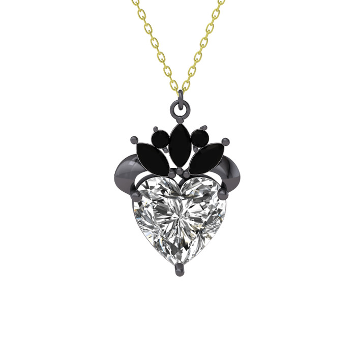 Beyaz zirkon ve siyah zirkon 925 ayar siyah rodyum kaplama gümüş kolye (40 cm gümüş rolo zincir)
