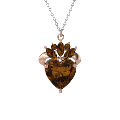 Dumanlı kuvars 18 ayar rose altın kolye (40 cm beyaz altın rolo zincir)